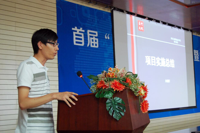 图为:北京匠们文化传播有限公司教学项目负责人白瑞军针对教学项目进行汇报总结